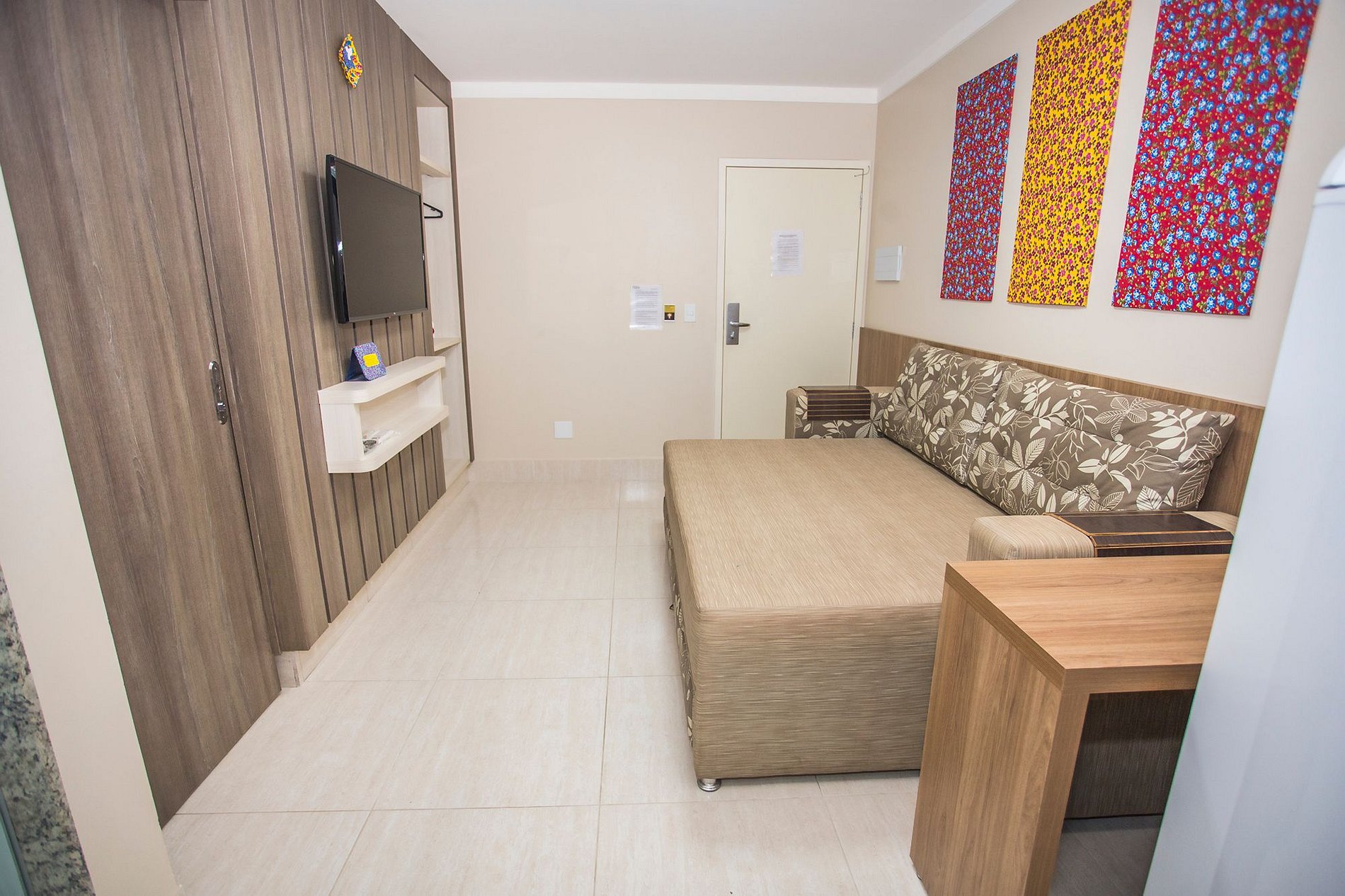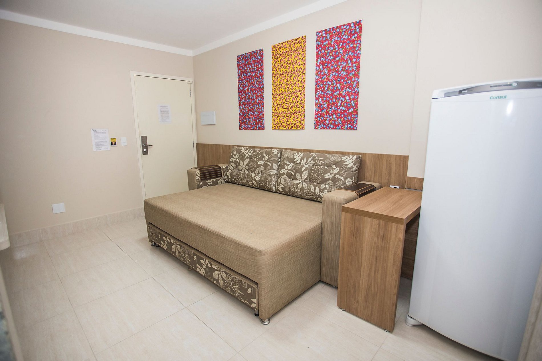 A limpeza diária do apartamento inclui a higienização da sala, do quarto e do banheiro, realizada por nossa equipe de camareiras.